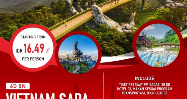 - Mengunjungi : Bana Hills Station (Cable Car) , Nui Chua & The Mountain Peak , Vong Nguyet Villa , Linh Ung Pagoda , Sakyamuni Buddha’s monument , Fantasy Park & Golden Bridge , Hoi An , Chinese Assembly Hall & Temples, old houses & Japanese Covered Bridge.